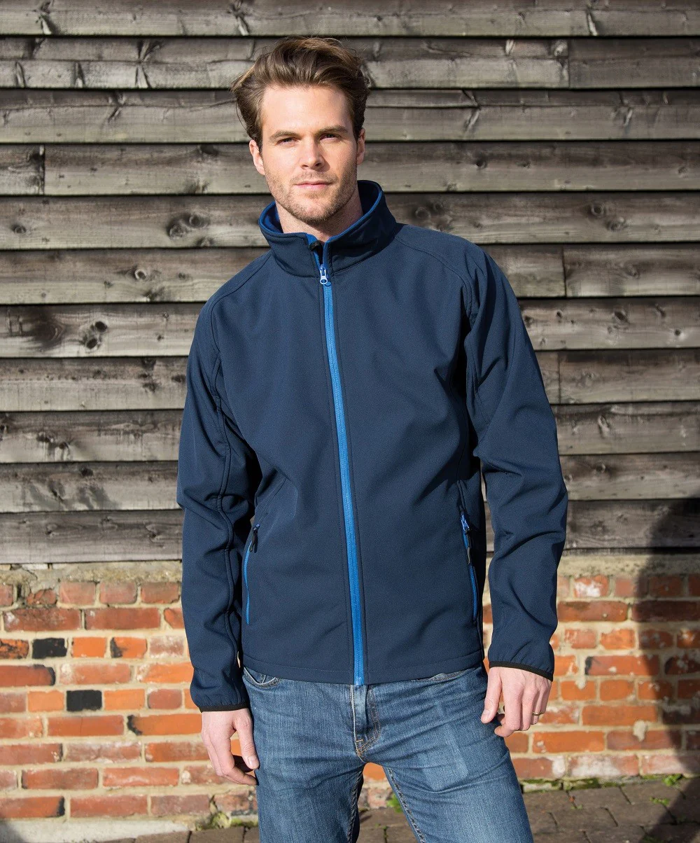 This softshell jacket by result has many unique and useful features. First, it’s printable! This means the crimped yarn stretch fabric is ideal for us to print your design on. Simply upload and position your artwork and we will do the rest. Secondly, this jacket has 2 layers: the outer layer which is an elastane free polyester, and the inner microfleece layer which adds warmth. Speaking of warmth, there is also a full front zip and chin guard to protect you from the wind.